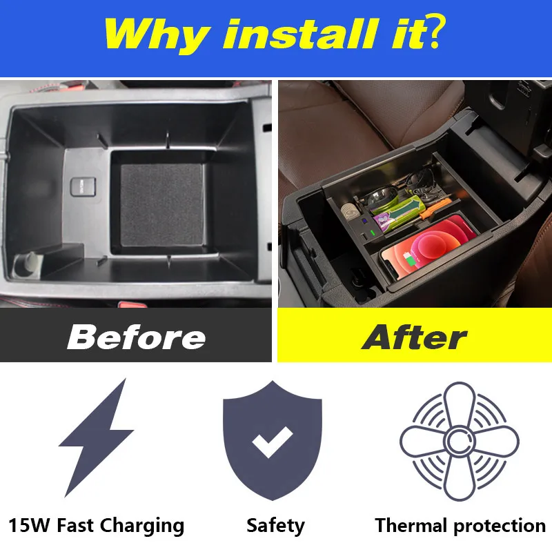 Product Name: Organizzatore Della Scatola Di Immagazzinaggio Del Bracciolo Centrale Del Caricatore Senza Fili Dell'automobile QI Per Toyota 4 Accessori Del Corridore 10W Ricarica Rapida Del Telefono 2021-2010